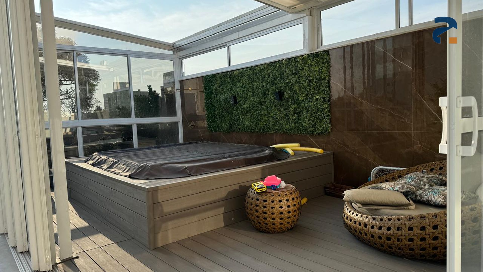 O imóvel também conta com ofurô para 10 pessoas, sistema de agua quente solar com boiler de 600 litros, cisterna 4 mil litros.